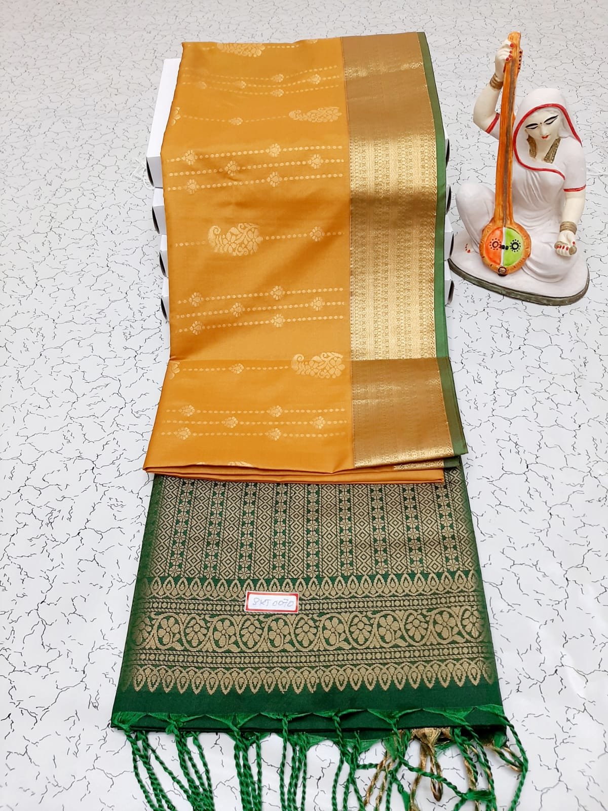 🌷Exquisite Design: Features elegant paisley (manga) buttas across the body with a rich, intricate zari border and pallu.